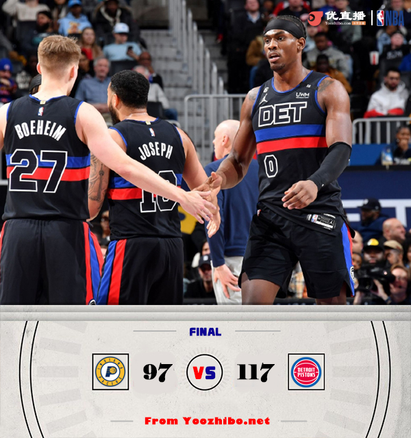 24直播网3月14日讯 NBA常规赛,活塞主场迎战步行者。步行者东部倒数第五,今天对阵联盟垫底的活塞轮休半套主力。上半场,活塞利用主场优势多点开花很快取得两位数领先,步行者招架不住,活塞里突外投轻松将分差拉开到20分以上。步行者全队手感冰凉,活塞一波14-2将优势扩大到30分以上,步行者及时回暖内外开花,但半场依然49-67落后活塞。下半场,步行者命中率下降,活塞牢牢占据场上主动保持着20分左右的领先,沃拉连得11分但也为时已晚。最终,活塞117-97击败步行者,结束了自己的11连败。