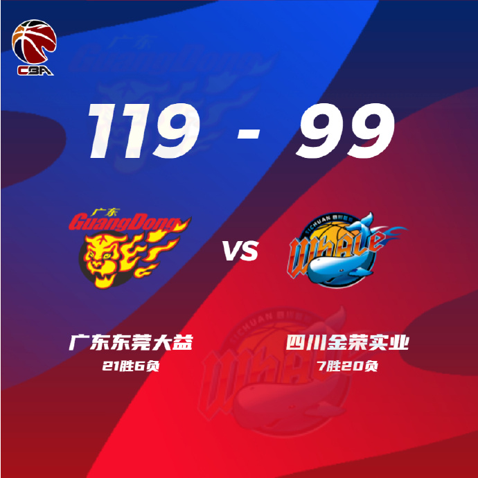 24直播网1月16日讯 CBA常规赛继续进行,广东迎战四川,目前广东以20胜6负高居联赛第三,四川则是7胜19负居于联赛第十七。比赛开局,两队进攻端手感火热,在外线连续命中,形成对飙,双方首节战成31平,次节四川进攻状态有所下降,广东逐渐确立优势,半场结束以58-54暂时领先。易边再战,广东稳扎稳打继续稳固领先优势,分差来到两位数,进入末节,两队交替取分,分差始终没能缩小,比赛逐渐失去悬念,最终广东119-99轻取四川,送给对手三连败。