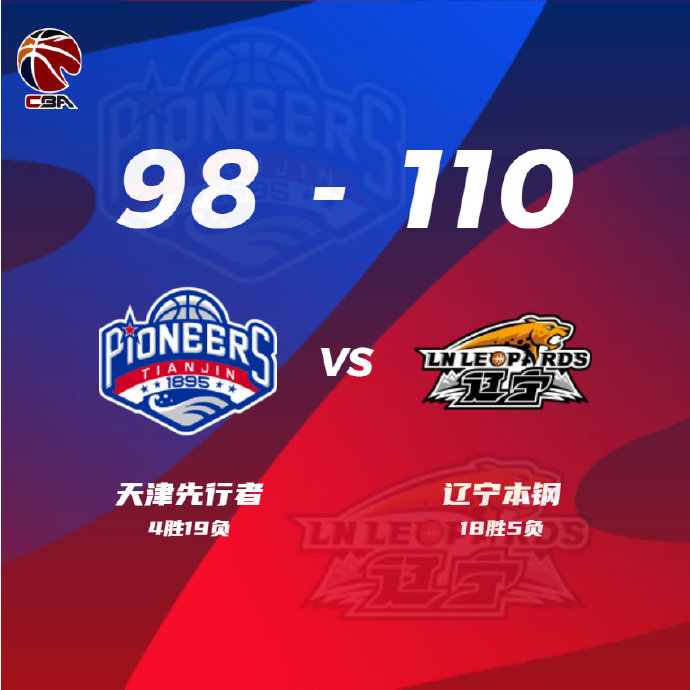 末节,李晓旭命中三分,金鑫二次进攻得手,韦瑟斯庞快攻上进,付豪篮下轻松吃饼。丛明晨跟进上篮打进,林庭谦回敬三分,丛明晨底角三分也有,韦瑟斯庞强突拿下2分。桑普森单手劈扣,林庭谦单打突破上篮得手,詹姆斯拉杆上进,郭艾伦转身抛投得手。终场前1分50秒,辽宁领先天津15分,双方均开始轮换阵容。最终,辽宁110-98战胜天津,取得4连胜的同时送给天津3连败。