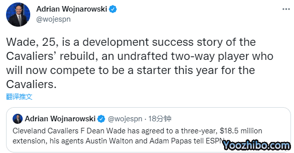 来源:24直播网09-25 10:5724直播网09月24日,据espn名记沃纳罗斯基报道,经纪人透露,骑士前锋迪恩-韦德已经同意与球队续签3年1850万美元的新合同;25岁的迪恩-韦德演绎励志故事,从落选秀双向合同球员到成为骑士重建的一部分,woj还透露他今年将会竞争球队的首发位置。