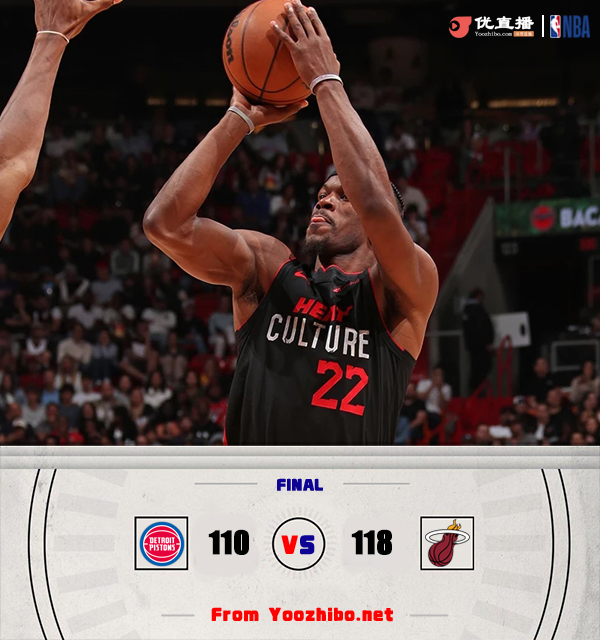 24直播网3月6日讯 NBA常规赛热火主场对阵活塞,热火目前排在东部第七,活塞则是遭遇2连败排在东部倒数第二。开场后热火虽然有些慢热但他们没有多久便找到节奏建立领先,马丁替补登场后表现出色连连拿分,但第二节比赛活塞打出气势将比分追上。下半场两队陷入拉锯战,热火稍微拉开比分活塞就马上掀起反扑将比分咬住,最后一节热火发挥稳定将领先优势保持到最后,巴特勒关键时刻连得5分杀死比赛,最终热火118-110送给活塞3连败。