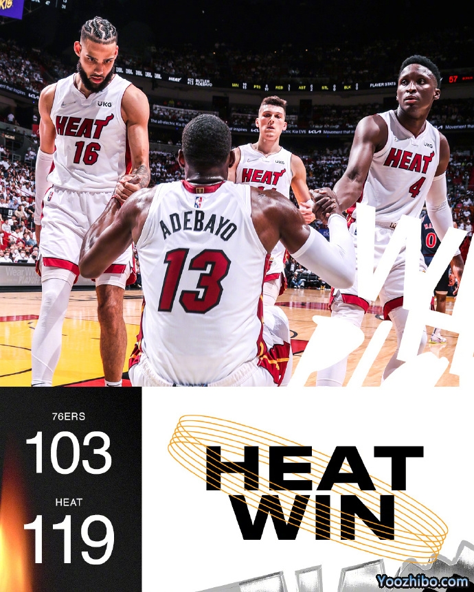 热火(2-0):巴特勒22分6板12助2断,阿德巴约23分9板3助,希罗18分7板3助,奥拉迪波19分6板,斯特鲁斯9分4板3助,文森特7分3板3助,塔克6分,马丁6分2板,戴德蒙7分5板,尤特赛文2分