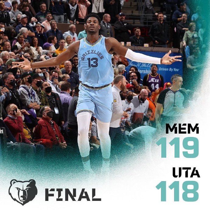 灰熊(9-8):莫兰特32分4板7助2断、贝恩28分4板4助2断、贾伦-杰克逊26分8板3断2帽、克拉克10分9板、安德森9分8板、威廉姆斯8分4板、康查尔4分。
