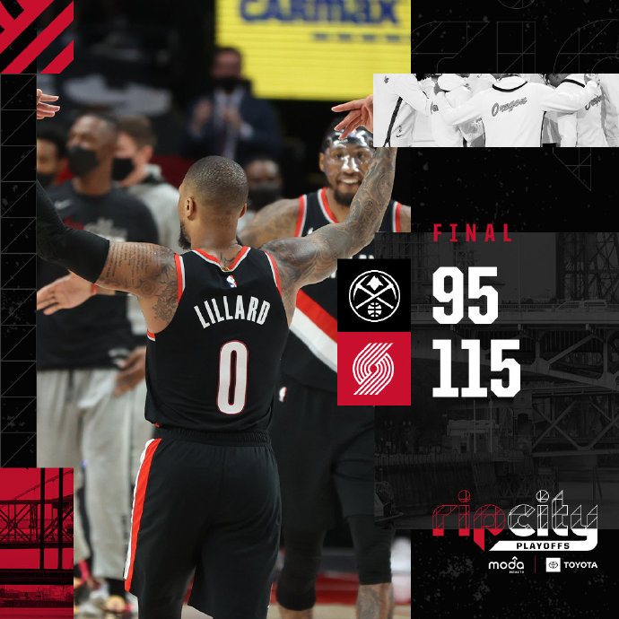 24直播网5月30日讯 NBA季后赛,掘金继续客场挑战开拓者。输掉自己首个主场之后,掘金迅速调整并且连赢两场,约基奇依然有着稳定的发挥,而小里弗斯的表现则完全是惊喜。反观开拓者,角色球员发挥欠佳导致对手可以重兵围剿自己的后场双枪,利拉德和麦科勒姆也打得非常辛苦,球队急需更多的人站出来分担他们的压力。一开场,两队你来我往比分紧咬,开拓者连中4个三分取得两位数领先,首节打完开拓者领先8分。第二节,贾玛考-格林连得9分并助攻队友帮助掘金扳平比分,但开拓者连续命中三分夺回领先,半场战罢开拓者57-47领先10分。下半场,开拓者火力全开,连连打出进攻高潮将分差拉开到30分以上,三节结束开拓者领先27分。第四节,比赛早早失去悬念,还剩半节多的时间掘金换下主力投子认负,两队尽遣替补打完剩余时间。最终,开拓者主场大胜掘金,将总比分扳成2-2平。