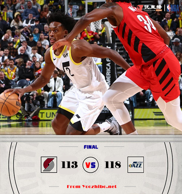 24直播网12月3日讯 NBA常规赛,爵士主场迎战开拓者。两队分列西部倒数第三和倒数第四。上半场,双方开场阶段势均力敌,比分交替领先,塞克斯顿高效输出,爵士连中三分打出14-3的攻击波取得两位数优势,半场战罢爵士56-44领先12分。下半场,双方围绕10分左右分差展开拉锯战,爵士强攻内线频频得手,开拓者连中三分顽强咬住,末节爵士命中率下降,开拓者奋力反击不断缩小分差,关键时刻布罗格登三分扳平比分,此后双方再无建树,比赛进入加时。加时赛,双方依旧打得难解难分,关键时刻开拓者连续打铁,科林斯罚球杀死比赛。最终,爵士加时118-113力克开拓者,主场拿到胜利。