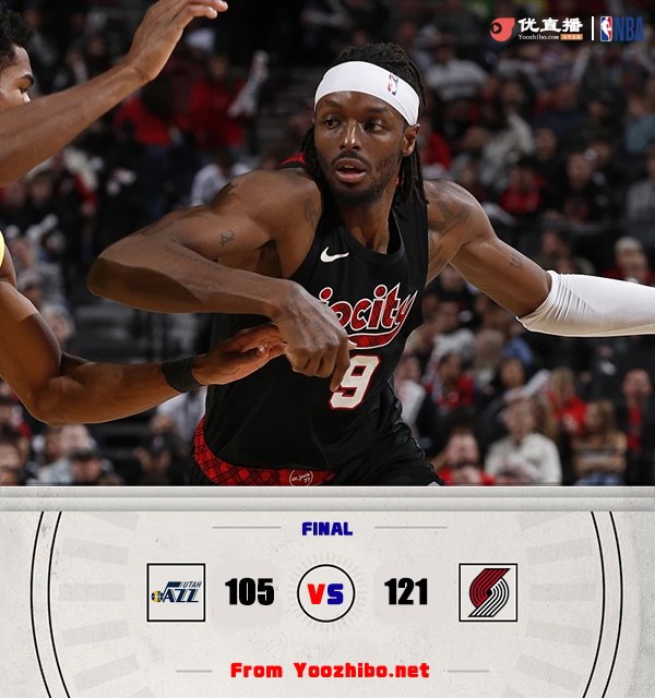 24直播网11月23日讯 NBA常规赛,开拓者主场迎战爵士。开拓者近况不佳已然遭遇8连败,爵士是3连败。比赛开始,开拓者利用主场优势率先发力,内外开花很快取得两位数领先,爵士强攻内线连投带罚拿分苦苦追赶,开拓者牢牢占据场上主动,多点开花不断扩大优势,爵士无力招架,半场战罢开拓者65-46领先19分。易边再战,开拓者命中率稍有下降,但依然稳稳保持两位数的优势,末节爵士再度哑火,开拓者火力全开一举将优势拉开到30分以上杀死比赛。大比分领先的开拓者率先换下主力,爵士首发5人耗完垃圾时间。最终,开拓者121-105大胜爵士,结束8连败的同时送给对手4连败。