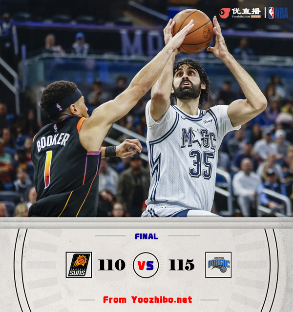 24直播网讯北京时间12月9日讯 NBA常规赛,太阳对阵魔术,太阳最近遭遇2连败,魔术上场比赛输给76人,本场比赛杜兰特、班凯罗和小瓦格纳均因伤缺阵。开场后魔术多点开花稍稍占据先机,随后太阳外线突然爆发打出一波13-0的攻势反超比分,科尔-安东尼替补登场后连连为魔术追分。第二节上来比尔不仅能够自己得分,还多次为队友送出助攻,魔术随后掀起反扑一度追平比分。琼斯站出来内突外投强势回应帮助太阳稳住阵脚。易边再战,太阳上来又是连中三分将分差拉大,但随后魔术掀起反扑再次咬住比分。第四节萨格斯站出来连续拿分帮助魔术完成反超,太阳关键时刻连续投篮不中,比塔泽补篮打进锁定胜局,最终魔术115-110送太阳3连败。