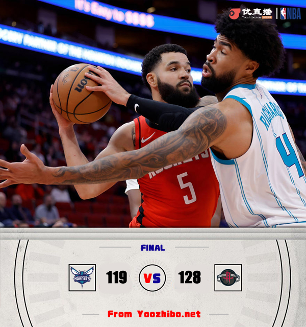 24直播网11月2日讯 NBA常规赛激战正酣,火箭主场迎战黄蜂,两队均近况不佳,火箭开赛至今三连败难求一胜,黄蜂近期遭遇两连败。此役开打后华盛顿手感滚烫连中三分,海沃德续上火力,火箭逐渐找到状态给予回应,中段黄蜂进攻突然断电,范弗里特联手杰伦-格林13-2攻击波拉开比分,首节结束时火箭确立12分优势,次节回来,华盛顿延续手感率队追分,但范弗里特外线强势回应,火箭稳扎稳打保持优势,末段黄蜂内外开花再度发力,半场战罢,火箭守住3分优势。易边再战后开局阶段两队继续鏖战,狄龙连中三分率队再度拉开比分,末段两队进攻均陷入停滞,三节结束后火箭依然领先8分,末节决战,火箭一波8-1扩大优势,随后两队你来我往火热对攻,决胜时刻杰伦-格林里突外投守住胜果,最终火箭128-119力克对手迎来赛季首胜。