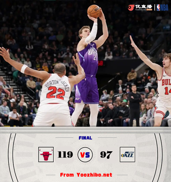 24直播网讯北京时间3月18日讯 NBA常规赛,公牛对阵爵士,公牛上场比赛惜败火箭依旧在东部第十,爵士最近遭遇9连败垫底西部。开场后公牛多点开花以10-0开局,爵士连续进攻内线得手缩小分差,不过公牛又是打出一波攻势将分差拉大到两位数。第二节上来爵士内外开花一波14-2的攻势完成反超,随后两队陷入拉锯战,依靠琼斯的一记三分,公牛上半场领先1分。易边再战,布泽利斯和琼斯联手打出一波小高潮帮助公牛再度领先,爵士外线手感不佳还是依靠冲击内线追分,公牛在进攻端表现稳定,场上分差一直维持在两位数,第四节爵士一度掀起反扑追到只差4分,但接下来爵士进攻突然断电,公牛回应12-0的攻势再度将比分拉开,最终公牛111-97送给爵士10连败。