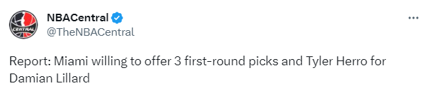 据此前报道,开拓者想用利拉德换来杜兰特、戈贝尔以及米切尔级别的回报,想要4个首轮签、多份优质合同以及至少一名年轻的球星;很明显,开拓者的要价很高,现在热火愿意给希罗和三个首轮签,已经接近开拓者的要价。