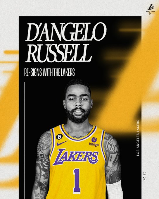 在22-23赛季期间,湖人在交易截止日前通过交易换来拉塞尔,后者重返洛杉矶,常规赛为湖人出战17场比赛,场均拿到17.4分6.1助攻2.9篮板,助湖人强势逆袭重返季后赛;季后赛拉塞尔出战16场,场均贡献13.3分4.6助攻2.9篮板。