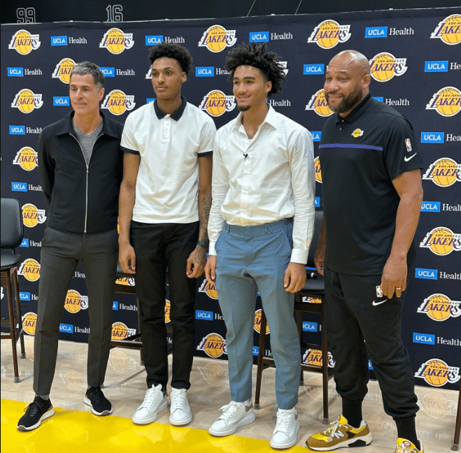 湖人两大新秀杰伦-胡德-席菲诺与马克斯韦尔-刘易斯正式亮相。