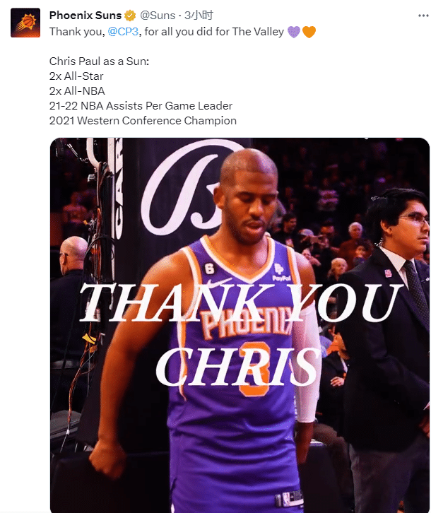 太阳正式告别保罗和沙梅特:谢谢你,克里斯-保罗。