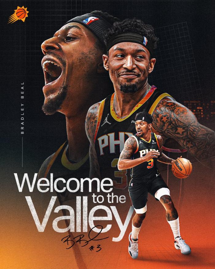 太阳、奇才和步行者三方交易正式达成,太阳欢迎比尔来到菲尼克斯:3次全明星、2次场均30+和1次最佳阵容,欢迎比尔为菲尼克斯带来额外的能量。
