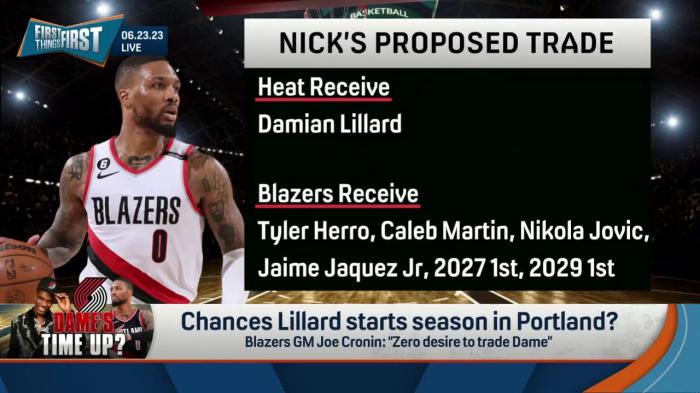 名嘴尼克-怀特在节目中提出一笔交易方案——热火送走希罗、马丁、约维奇、小海梅-哈克斯、2027年和2029年首轮选秀权,从开拓者得到利拉德。