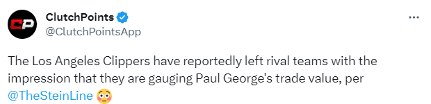 24直播网06月22日讯 ,曝快船正式衡量乔治的交易价值,据名记Marc Stein透露,快船在选秀这周的对话中给对手球队留下了这样的印象:快船在试图评估保罗-乔治的交易价值;还有人说快船在认真考虑拆解科怀-莱昂纳德和保罗-乔治的组合。