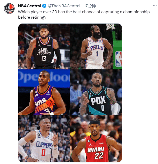 美媒发问,乔治、哈登、保罗、利拉德、威少和巴特勒这些30岁以上的球星,谁最有机会在退役前夺得总冠军?再过2个多月,哈登就年满34岁了,生涯至今,哈登先后为雷霆、火箭、篮网和76人四支球队效力,打了14年仍在追求生涯首冠。