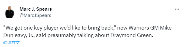 对于格林跳出合同,勇士新总经理邓利维表示:我们非常希望追梦能够回归,有信心能够完成这件事。