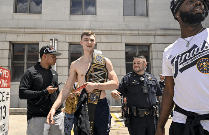发表演讲时,约基奇这样说道:你们都知道我说过,我不想参加冠军游行,我想要回家。但现在我TMD就想留在游行之中,这就是最棒的,这种感觉太美妙了,这是我们一生中都会铭记的时刻,看到你们在街上欢呼我很开心,我爱你们,丹佛,这个冠军是为你赢下的(Denver. This one is for you)。