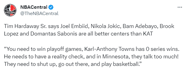森林狼球员们的话太多了,所有人都在说。安东尼-爱德华兹话多,卡尔-安东尼-唐斯话多,还有其他一些球员,他们都话太多。他们需要闭嘴,专注于比赛。