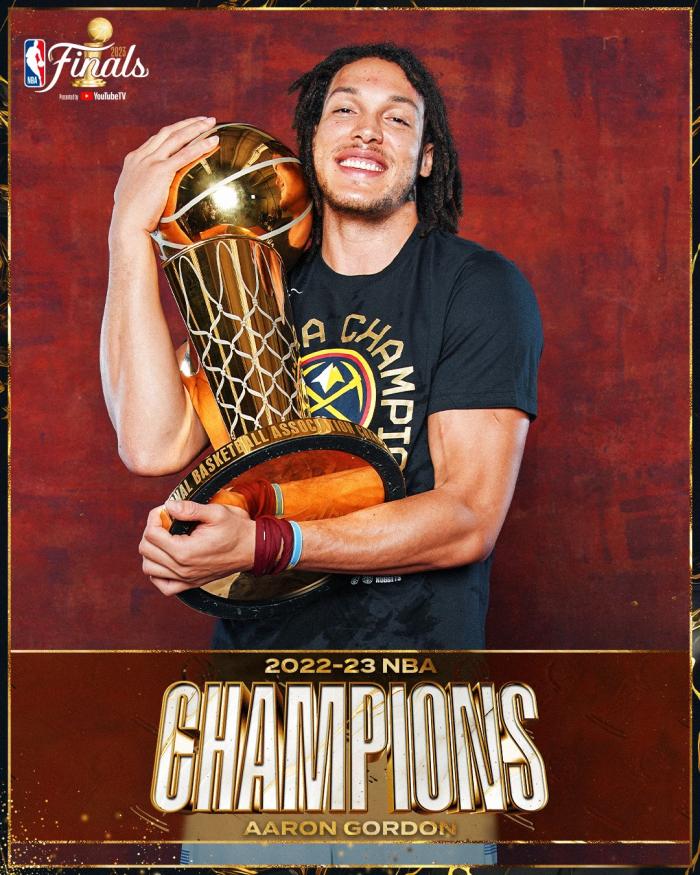 掘金夺得队史首冠当晚,戈登跑到球馆外和掘金球迷一起狂欢——赤膊跑到街头和丹佛球迷一起跳舞狂欢,还坐在车窗上抽着雪茄与民共舞以及加入球迷的游行队伍之中,现场球迷高呼“AG(阿龙-戈登)”,这一刻,掘金球迷已经足足等了47年,这也是戈登职业生涯首次尝到夺冠的滋味。