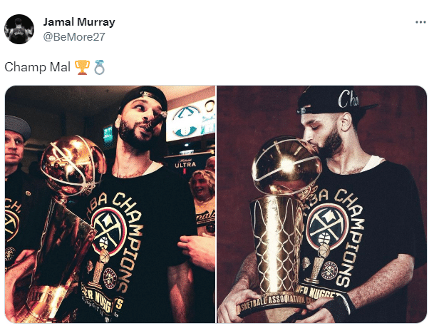 掘金管理层相信穆雷能够帮助球队夺冠,即使穆雷曾不幸遭遇十字韧带撕裂的重伤,掘金也没有放弃他;掘金夺冠后,穆雷情绪失控热泪盈眶,更是抱着掘金老板表示:感谢你对我保持耐心,球队本可以放弃我。