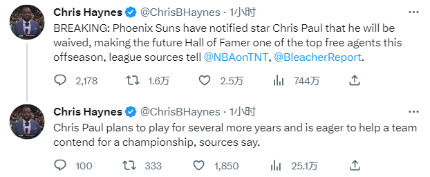 Haynes报道太阳将会裁掉保罗,后者计划再打几年,继续冲击总冠军。