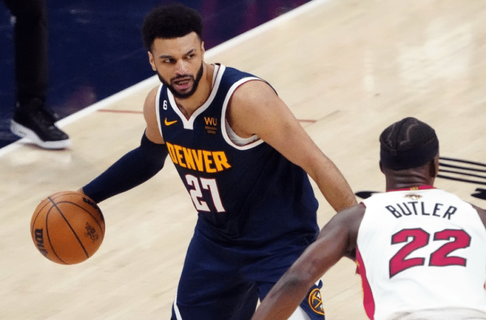 总决赛G2一战,热火第一节一度领先11分,斯特鲁斯首节命中4记三分立功,不过热火调整阵容后约基奇带队缩小分差,热火首节26-23仅领先3分;第二节,热火进攻停滞,被掘金打出21-6攻势,并且一度落后15分,不过热火继续顽强抵抗,半场打完仅落后6分。