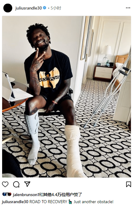 来源:24直播网06-04 12:3224直播网讯06月04日,尼克斯球星兰德尔已经成功接受脚踝手术,晒术后恢复照,配文写道:康复之路,只是又一个障碍;预计兰德尔将在下赛季训练营前康复。