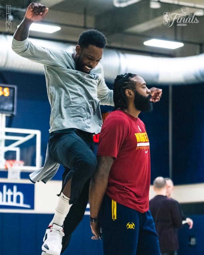在全队备战总决赛G1时,约基奇的状态十分放松——与主帅马龙有说有笑,然后运球急停中投命中;三分打铁后约老师的“舞姿”十分有趣;约基奇还化身“球童”,站在篮下附近抢篮板然后为队友传球;连中三分后,约基奇呐喊:我手感太火热了。