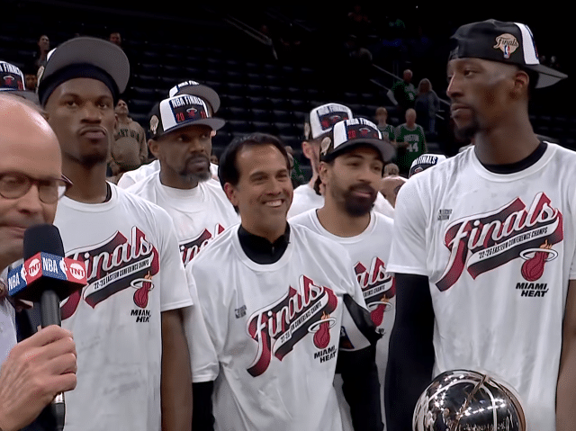 来源:24直播网05-30 11:4424直播网讯05月30日,NBA东部冠军诞生,热火东决4-3淘汰凯尔特人,正式夺得东部冠军,与掘金会师总决赛争夺总冠军;巴特勒(5票)险胜马丁(4票),生涯首次夺得东决MVP,在东部冠军颁奖典礼上,莫宁为热火颁发东部冠军奖杯,阿德巴约高高举起东部冠军奖杯,巴特勒获MVP后十分淡定,在东部冠军合影中,巴特勒抱着MVP站在C位,阿德巴约抱着东部冠军奖杯,热火全队将直接飞往丹佛.