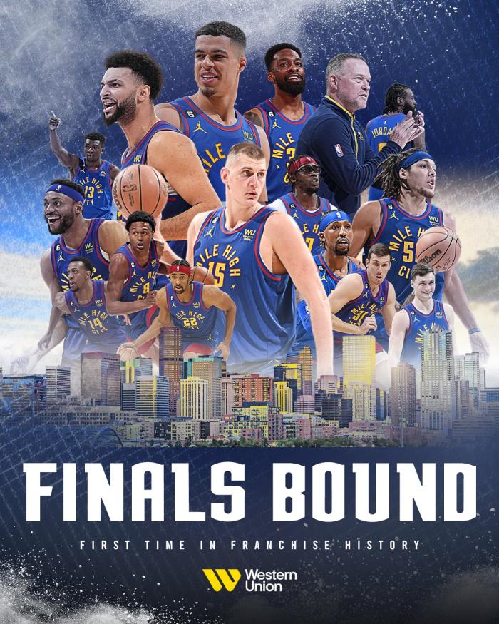 24直播网05月24日,NBA西部冠军正式诞生,掘金西决4-0横扫湖人晋级总决赛,这是掘金队史首次进入NBA总决赛,约基奇毫无悬念地荣膺西决MVP;西部冠军合影出炉,湖人旧将抱起西部冠军奖杯,悍将紧抱约基奇MVP,约老师低调站后排。