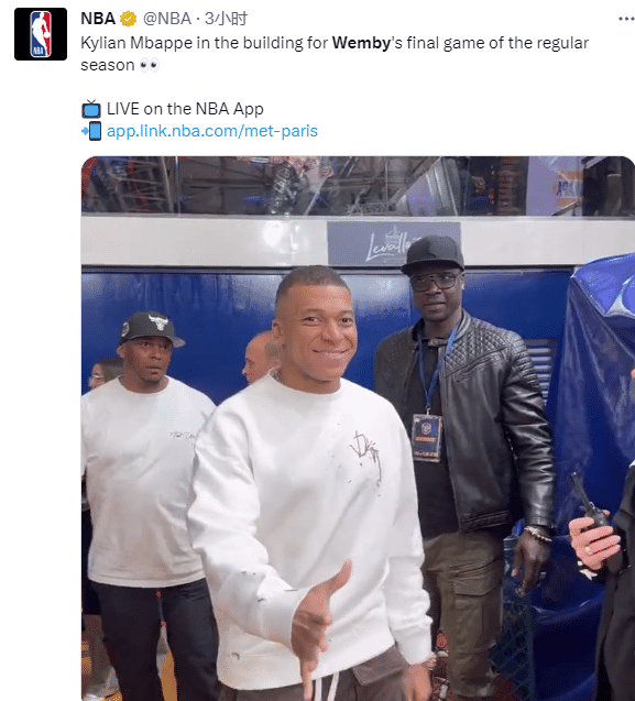 法国足球巨星姆巴佩来到现场观看文班亚马的比赛。