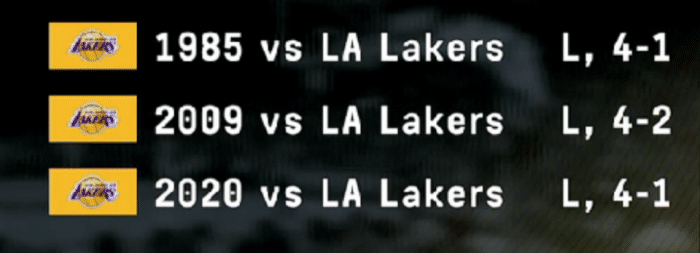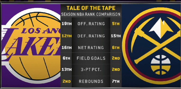 两队本赛季的常规赛交锋四次,各胜两场。不过,对于目前的西决来说,并没有太多参考意义,四次交锋都发生在1月10日前,也就是交易截止日前。掘金并没有和湖人现在这套阵容有过交锋。