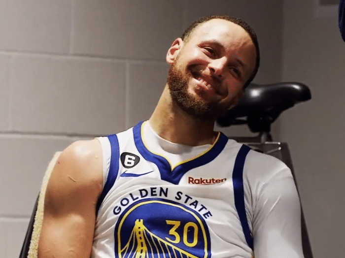 库里累得瘫坐椅子上!勇士更衣室庆祝曝光 全队欢呼他咧嘴挤出笑容