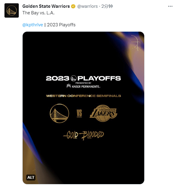 勇士晋级后湖人官方连续发推宣战,现在勇士官方已经应战,先是晒出詹库同框的赛场照,配文写道:很快见,湖人队;勇士官推还写道湾区大战洛杉矶。