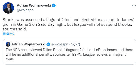 24直播网讯04月24日,狄龙-布鲁克斯会因袭击詹姆斯的裆部被联盟禁赛吗?据名记woj报道,联盟官方审查了狄龙对詹姆斯的二级恶意恶犯,不会有罚款以及禁赛的追加处罚。狄龙回应此事:媒体和球迷让我成为恶棍。