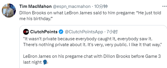 狄龙透露赛前与詹姆斯交谈的内容:他仅仅只是告诉我他的生日。