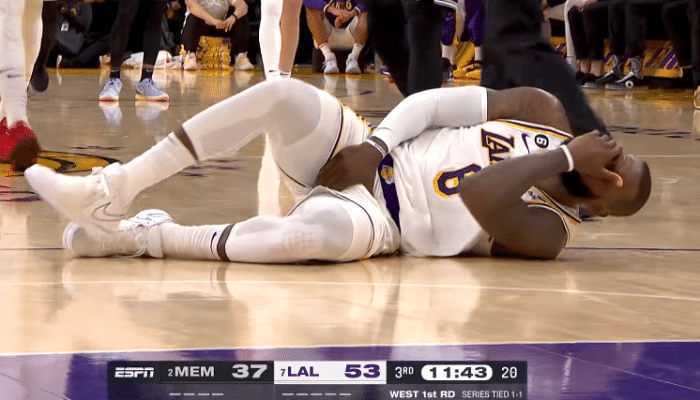 詹姆斯惨遭袭裆痛苦倒地:狄龙吃到二级恶犯 直接被驱逐离场