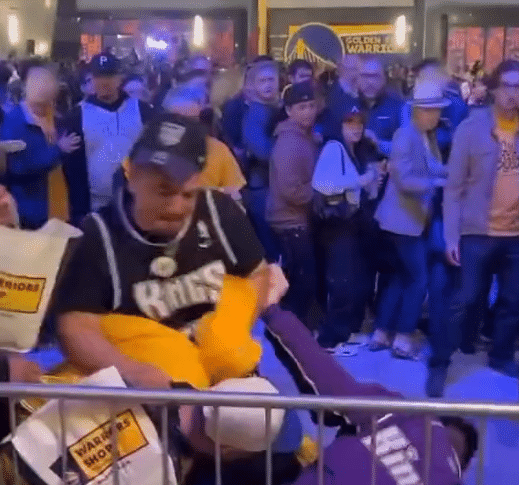 勇士国王两队球迷冲突曝光:挥拳打头上演全武行 勇蜜挨打被揍惨了