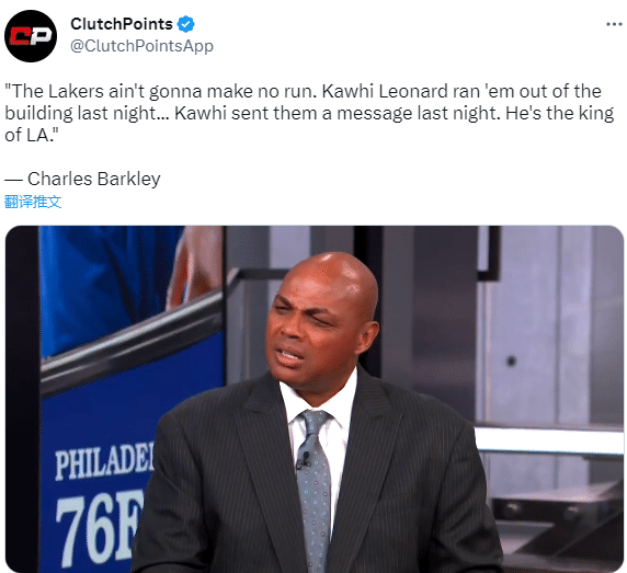 24直播网04月06日讯 ,NBA名宿巴克利在节目中贬低湖人并且狂赞小卡,表示:湖人没戏,湖人没戏,科怀-莱昂纳德昨晚把他们赶出了球馆,科怀昨天向湖人表态了,他才是洛杉矶之王。