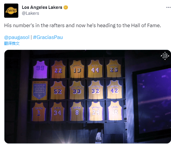 湖人官方祝贺加索尔,恭喜两届总冠军和湖人传奇入选名人堂,他的球衣永远悬挂在了球馆上空,现在他又迈向了名人堂;公牛和马刺官方也祝贺加索尔。