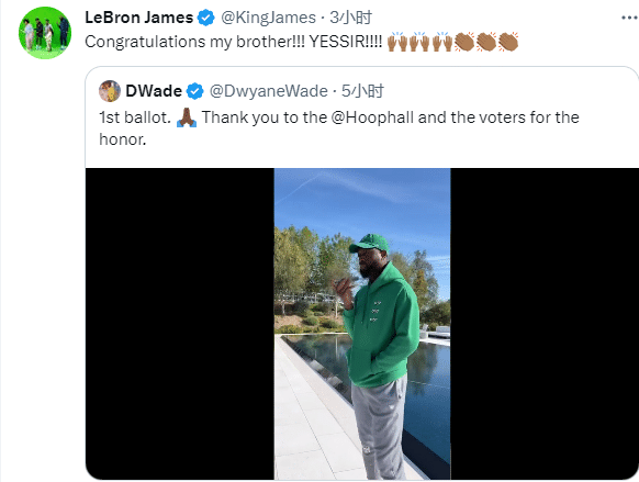 詹姆斯祝贺韦德:恭喜你我的兄弟!!!太棒了。