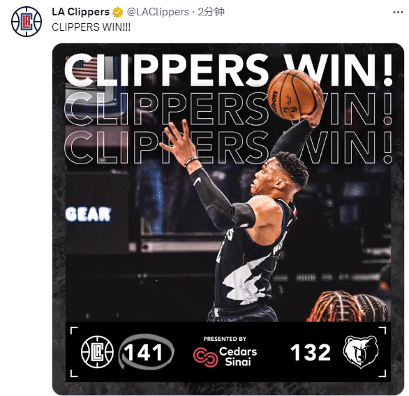 下半场,威少第三节第5次三分出手再次命中,不过莫兰特带队疯狂反扑,两队三节打成105平;末节快船外线继续下起三分雨,威少再次发力,连得7分带队牢牢掌控局面,之后威少造犯规两罚全中,考文顿三分杀死比赛,最终快船拿下关键一战。