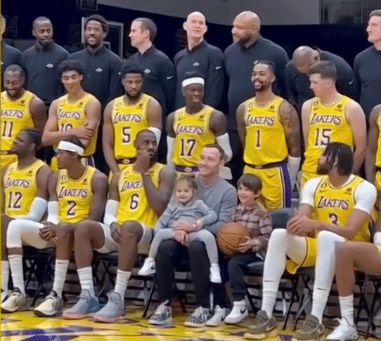湖人全队大合影出炉:詹皇C位领衔施罗德开怀大笑 浓眉强颜欢笑