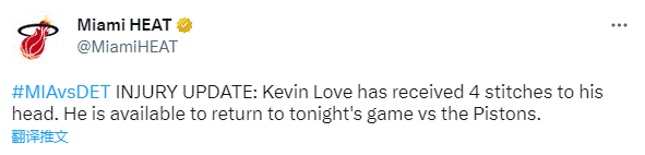 据热火官方报道,乐福在更衣室中缝了四针,并且可以继续出战,34岁乐福太拼了,不过末节乐福伤后未上场;本场比赛,热火和活塞打得十分胶着,但热火最后2分钟统治比赛,最终112-100逆转击败活塞;热火赢球后战绩变成39胜34负,仍排在东部第7位,落后东部第六的篮网1个胜场。