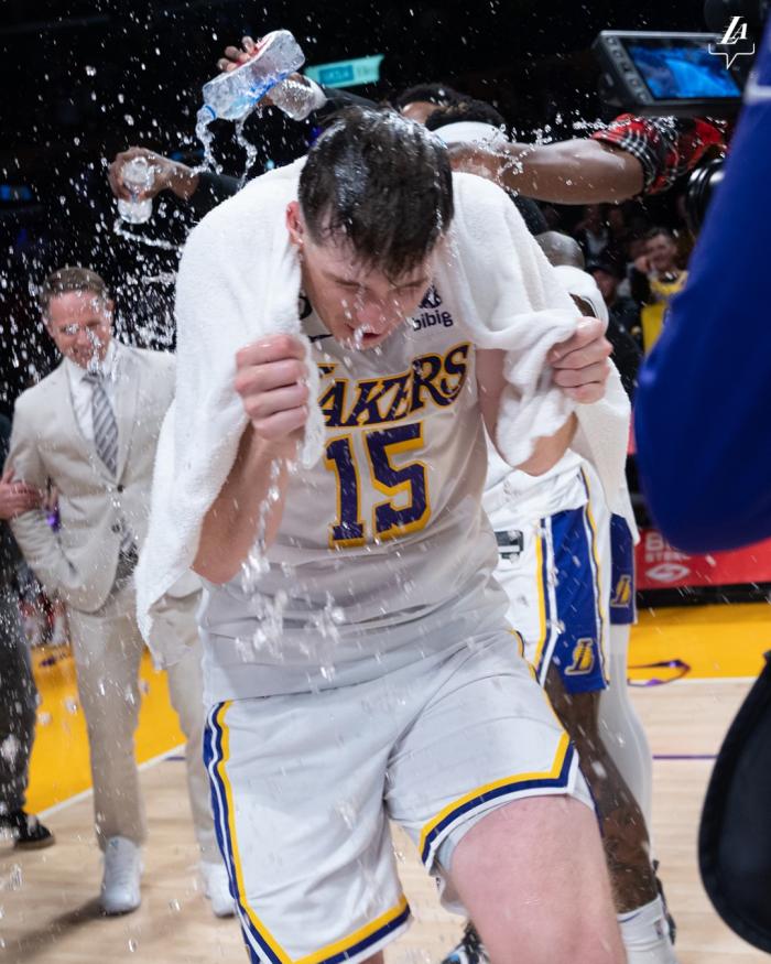谈到全场高呼MVP,里夫斯表示:每次我出场都会带着紧迫感,要把一切都留在场上,因为我觉着篮球就应该这样打。对于那些MVP呼声,这是非常特别的,对我来说意义重大,让我们一起大声喊,‘湖人国度!’