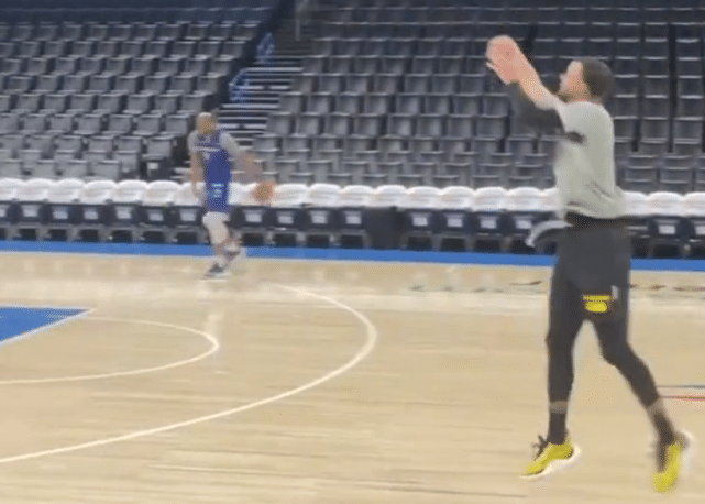 如今,7年多过去了,快要35岁的库里,在投篮训练中重现了绝杀一幕。同样的位置,同样的出手,库里还要配上同样的庆祝动作,所有的感觉,都要重温一遍。