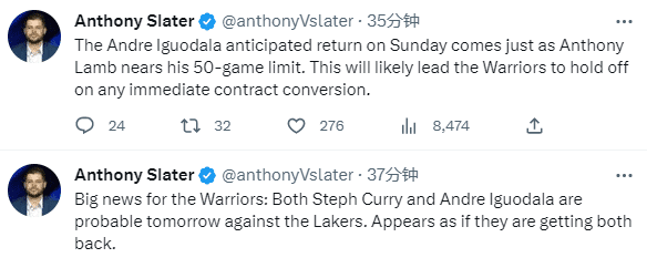 为何勇士突然计划让伊戈达拉上场?勇士记者Anthony Slater报道,伊戈达拉的回归时间恰逢兰姆接近他的50场比赛次数限制,这可能会导致勇士推迟他的合同转换。
