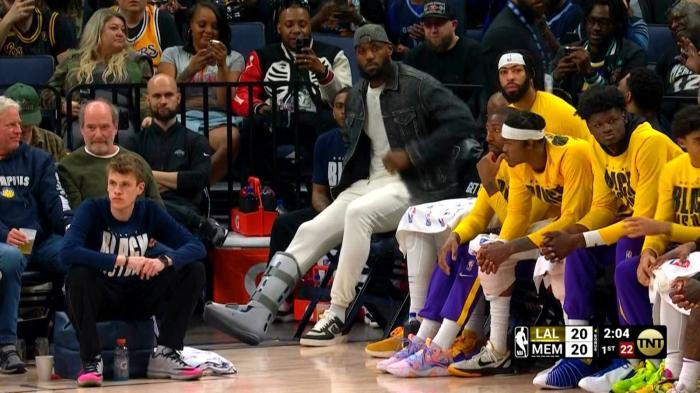 在湖人27分逆转独行侠的比赛中,第三节3分多钟,詹姆斯持球强突鲍威尔,发力时不幸受伤,无接触受伤倒地,当时詹姆斯听到了砰的一声;随后詹姆斯继续带伤出战,末节贡献11分,最终带领湖人导演大逆转;赛后詹姆斯一瘸一拐离开球馆。